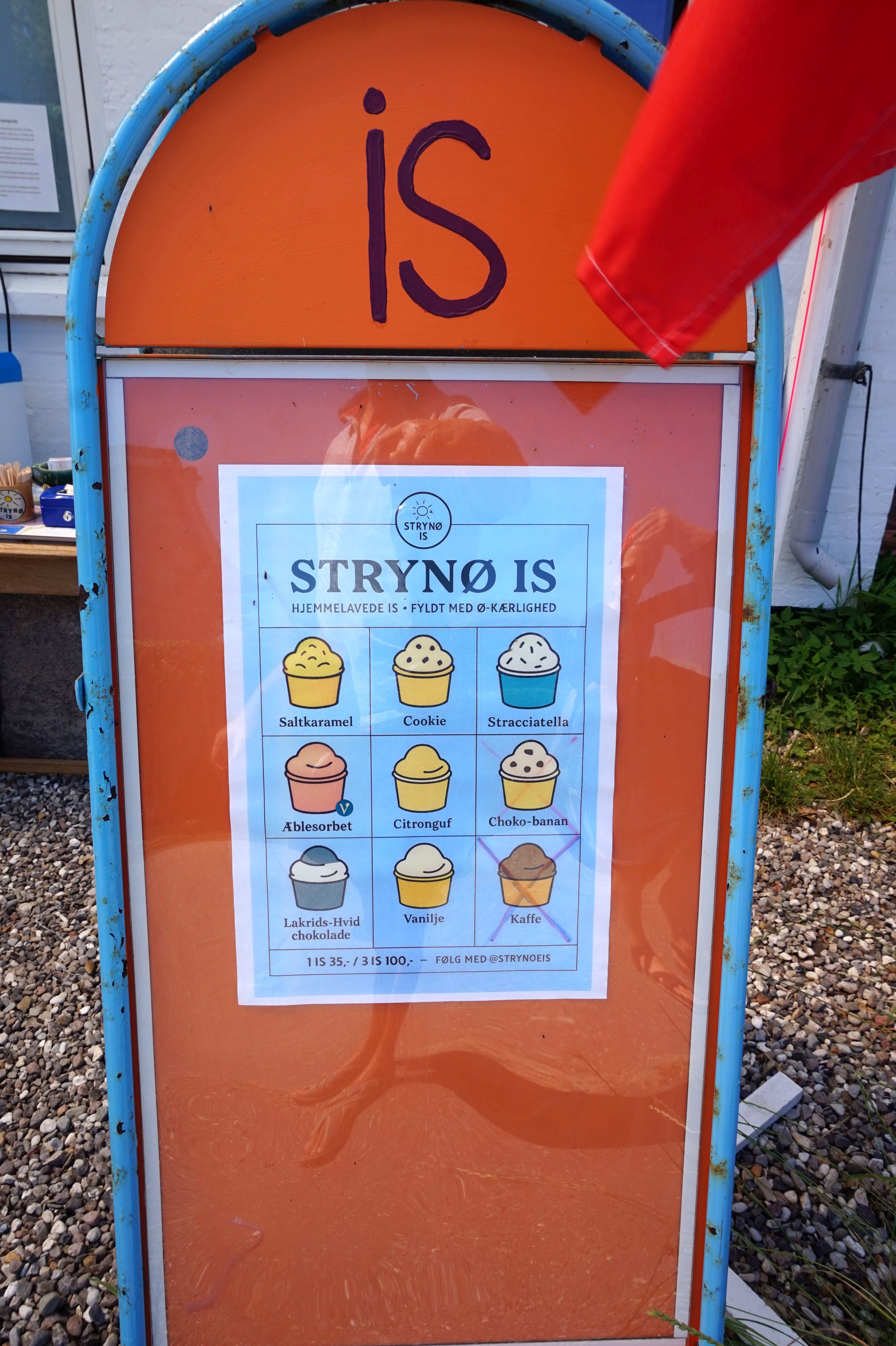 Die Insel überzeugt uns immer wieder. Der Kaufmann bietet mehr, als wir benötigen, und die sternförmig abgehenden Spazierwege erfreuen das Herz in jeder Richtung. Dazu bietet ein kleiner Familienbetrieb handgemachtes Strynö-Eis: ein wahrer Traum!