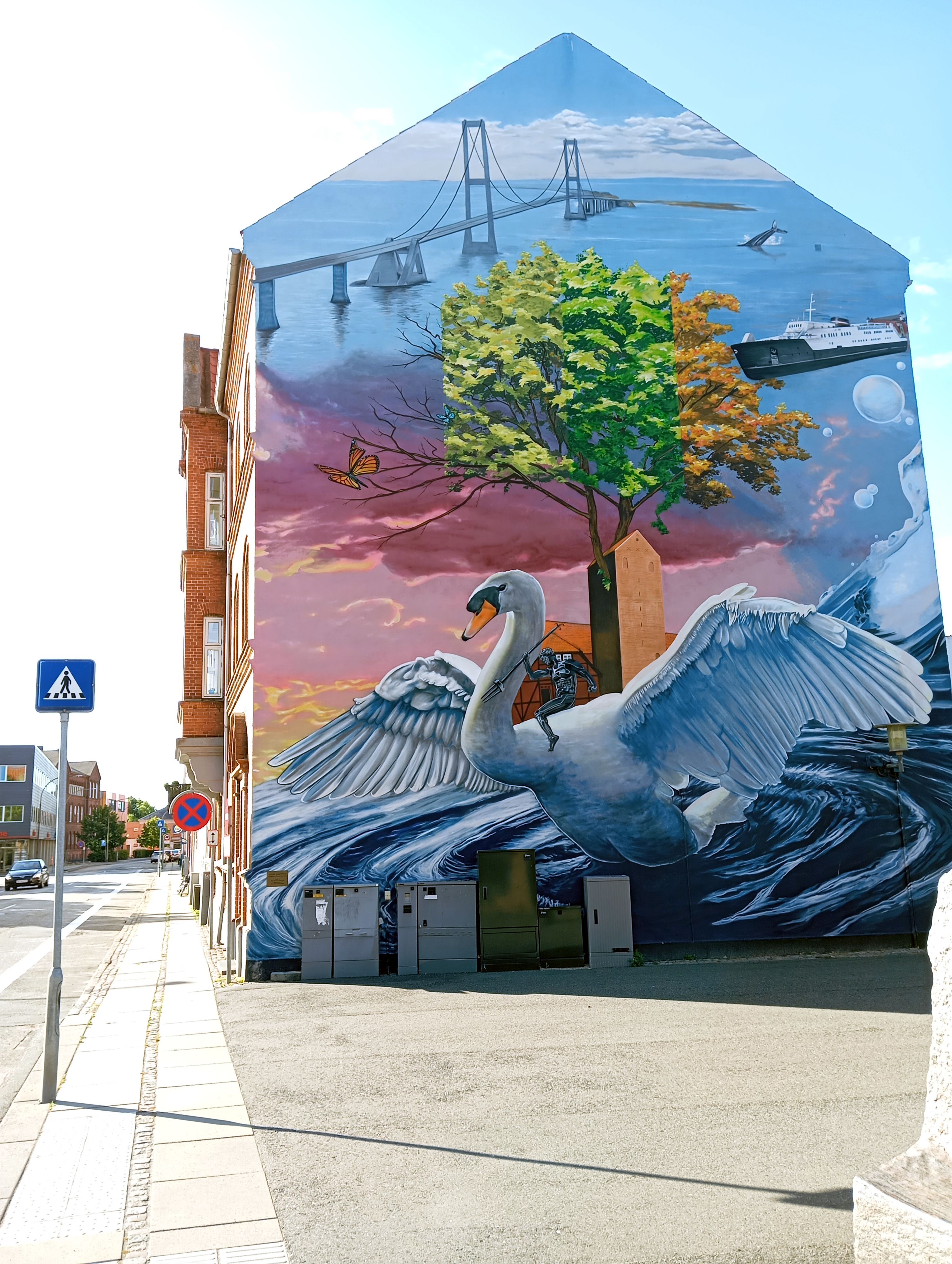 Ab Reersö richten wir unseren Kurs wieder nach Süden und unterqueren erneut die Große Belt Brücke. Kurz vor der Durchfahrt funkt uns Great Belt Traffic an! „Great Belt Traffic call the sailing boat Pangea“! Wir sollen auf keinen Fall die große Durchfahrt nehmen, sondern nebendran durchfahren. Das habe ich dem Zuständigen auch bestätigt und erklärt, dass wir halblinks nach Korsör abbiegen wollen. „Ah, you want to go to Korsör! Please have a good afternoon, Sir and a good watch! So wurden wir in den südlichen Teil des Gewässers geleitet. Korsör sind wir ebenfalls noch nie angelaufen und waren auch hier überrascht, ob der schönen Marina und der hafeneigenen Mini-beach, mit Badebrücke, die sofort getestet wurde. Herrlich!