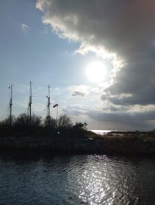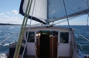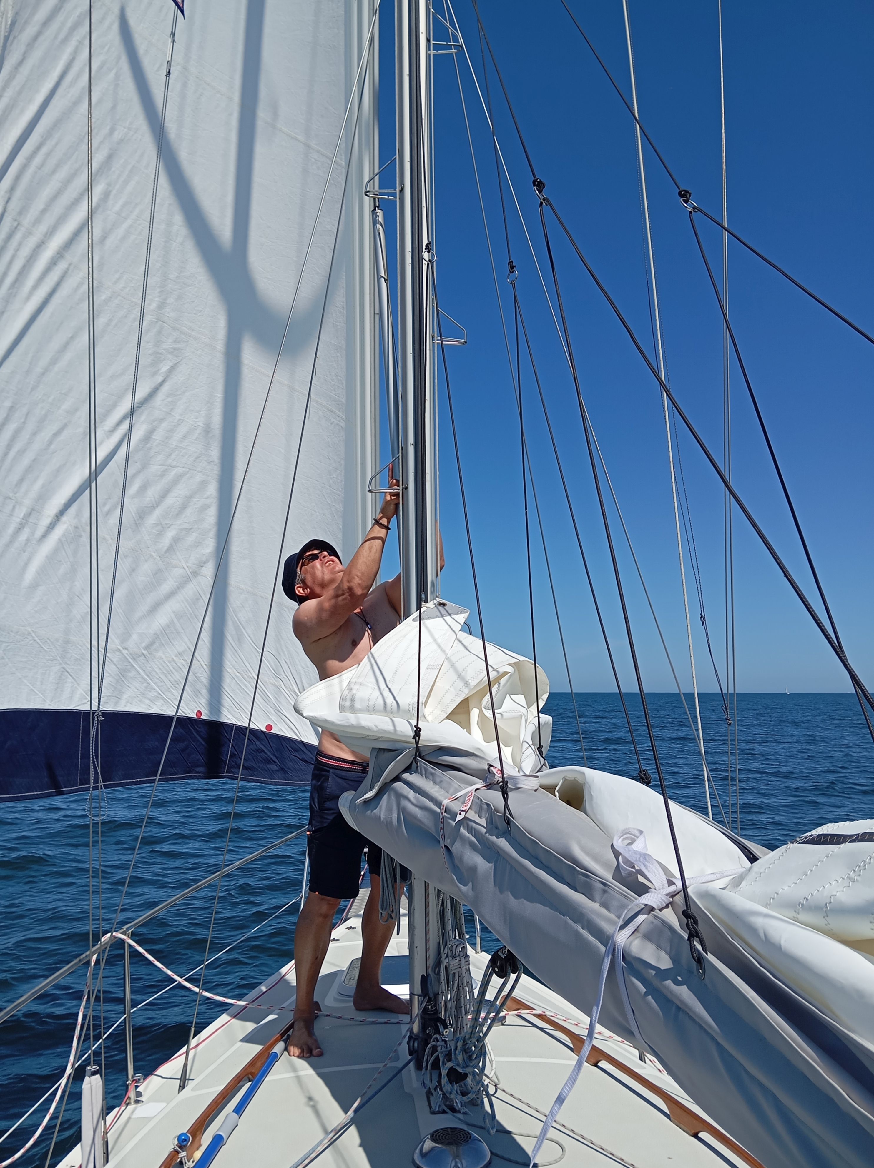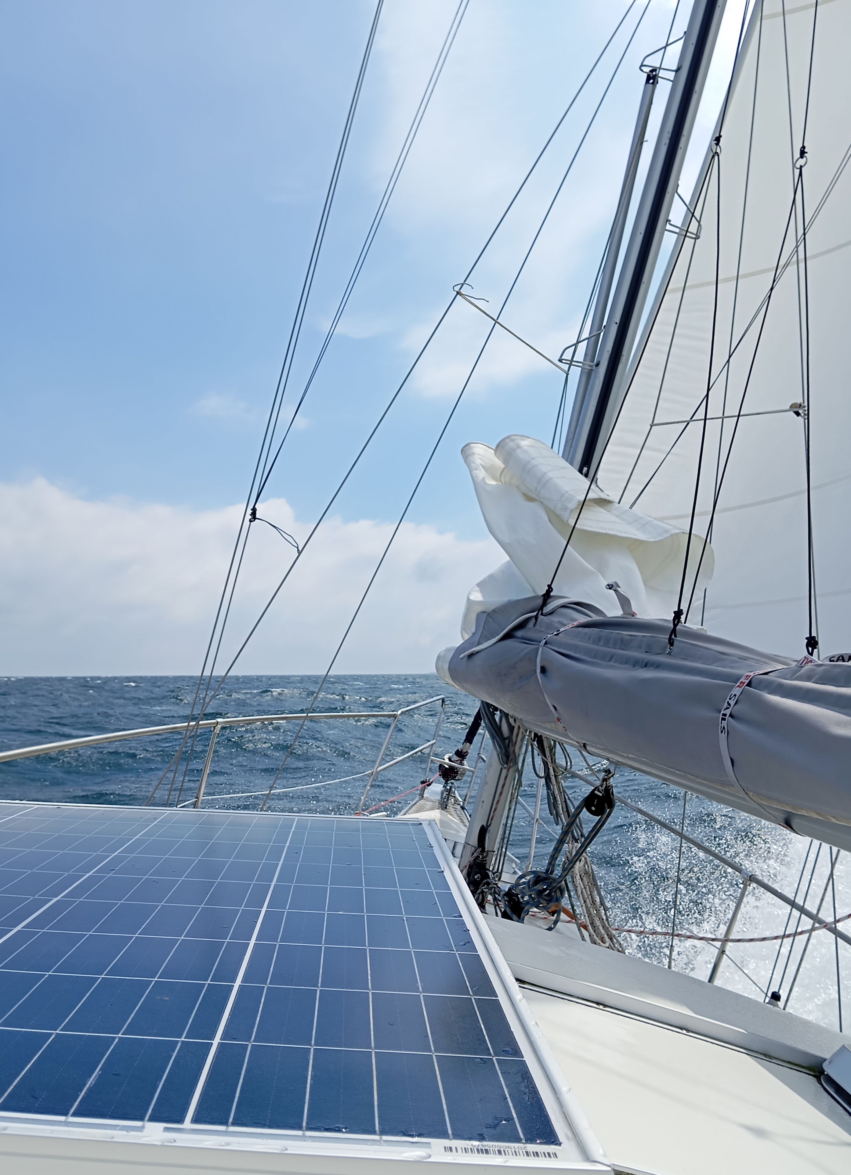 Nachdem wir mit einem nordwestlichen Wind endlich abgelegt haben, stellte ich nach ein paar Tagen fest, ups, es ist nur der „grüne Satz“ an Bord! Die anderen Sätze habe ich zu Hause vergessen….