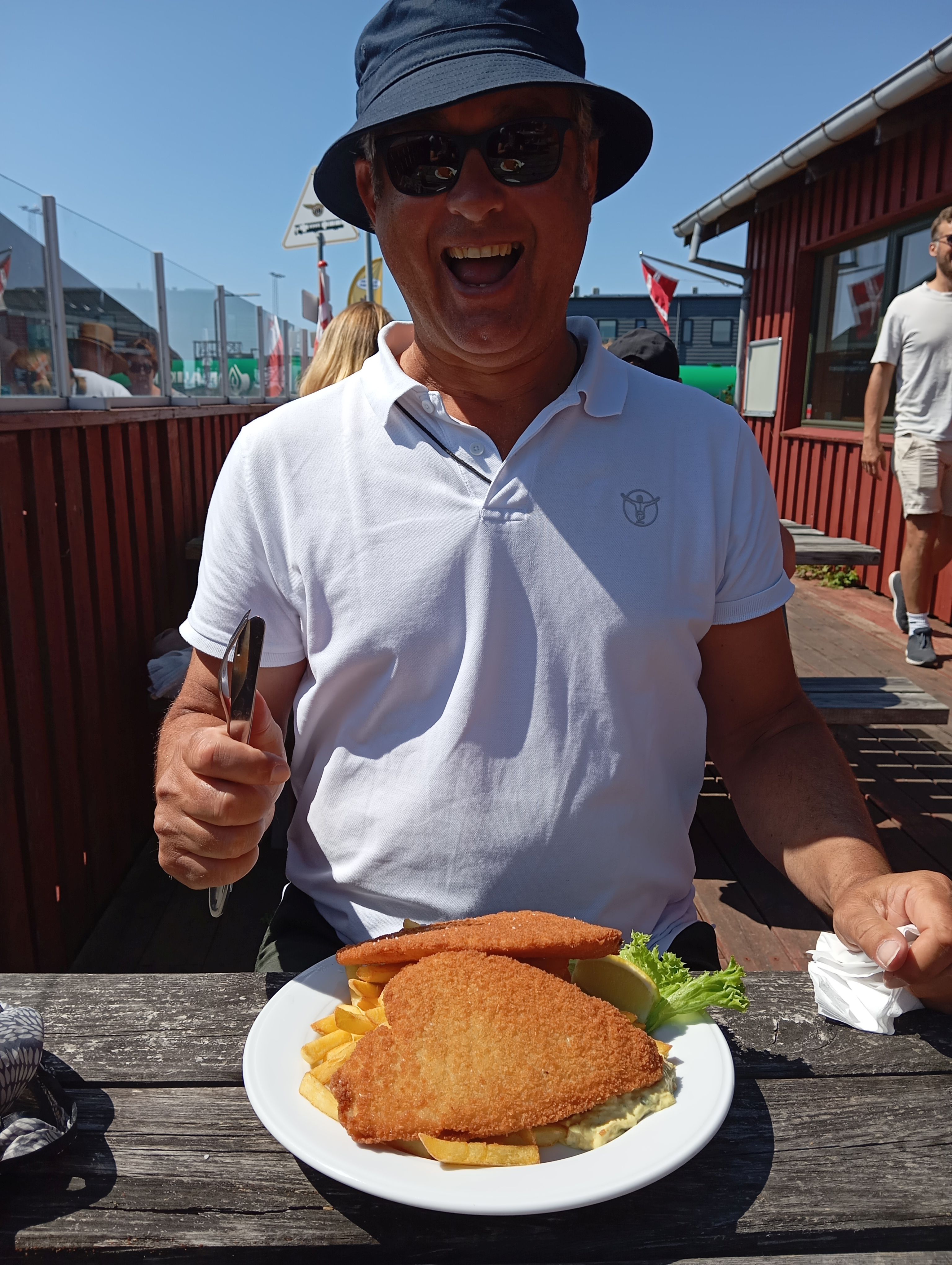 Am Folgetag haben wir den Guldborgsund erreicht und wollten direkt im Hafenimbiss „Lagunen“ Fisch essen: Montag Ruhetag! Das darf doch nicht wahr sein! Egal. Planänderung und erstmal im nahen gelegenen Supermarkt shoppen. Das beruhigt! Nach einem ausgiebigen selbst gekochten Essen und einem Bad am gegenüber liegenden Strand, vor der Brücke war die Welt wieder in Ordnung!