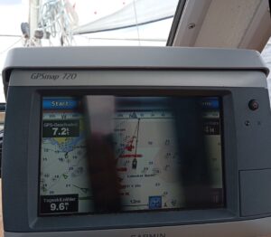 Wie im wirklichen Leben: wer am lautesten tönt…als Vertreter der klassischen Navigation, also mit Kurs-Dreieck und Papierseekarte lästere ich gerne über die Kollegen, die nur noch mit Handy und Co ihre Boote durch die Seegebiete führen. Bereits vor dem Sommertörn habe ich die Gelegenheit genutzt und von einem Ausbildungsschiff einen kompletten Ostsee-Satz an Papierkarten für ein erträgliches Salär gekauft. So junge Karten (zwei Jahre) hatte ich schon lange nicht mehr an Bord 😉.