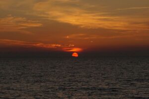 Mit ziemlich dichtem Nebel haben wir unsere Fahrt nach Süden fortgesetzt. Eine erstaunlich hohe Luftfeuchtigkeit mit „dicker“ warmer Luft begleitete unsere unheimliche Fahrt bis vor die Insel Poel. Vor dem Hafen ist der Nebel aufgerissen und die warme Sommersonne erfreute unsere Herzen. Wunderbar! Dazu noch einen spektakulären Sonnenuntergang am Abend und alles ist einfach nur noch schön!